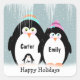 Pegatina Cuadrada Navidades Pingüino Familia Con Bebé