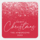 Pegatinas navideñas modernas con ráfagas de nieve blancas en la parte superior del diseño con un fondo rojo. "Feliz Navidad" se muestra en un moderno guión de caligrafía blanca con tu nombre de familia y el año que se muestra abajo con letras blancas. Utilice los pegatinas festivos para sellar los regalos de Navidad, los bolsos de regalo y los sobres de vacaciones.