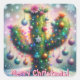 Pegatina Cuadrada Navidades Saguaro Cactus Whimsical Snowflakes