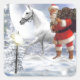 Pegatina Cuadrada Navidades Santa Claus con caballo blanco