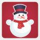 Pegatina Cuadrada Navidades Snowman con fondo rojo