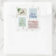 Pegatinas de navidad personalizadas con sellos postales de época en azul verde rojo y beige decorados con un estag, pinos, bayas de invierno y palabras festivas (Que nieve, Feliz Navidad y, Navidades de Joy Hope Peace Believe). La plantilla está configurada para personalizar uno de los sellos con el inicio de sesión y el nombre. Los sellos postales se sientan sobre un patrón de fondo de árboles de navidad en beige natural. Por favor, navegue por mi tienda en busca de diseños similares, con y sin fotos.