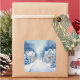 Una bella pegatina navideña para añadir a sus Navidades tarjetas o regalos de una escena de pueblo vintage azul de árboles, nieve y un camino