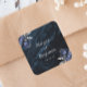 Pegatina Cuadrada Navy Blue Silver Floral Wedding