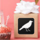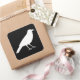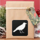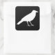 Pegatina Cuadrada Negro con un cuervo blanco.
