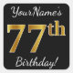 Pegatina Cuadrada Negro, Faux Gold 77th Birthday + Nombre personaliz