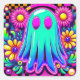 Pegatina Cuadrada Neon Floral Retro Ghost Halloween