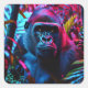 Representación digital de un gran gorila macho en una selva tropical con iluminación estilizada de neón.