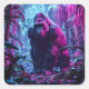 Representación digital de un gran gorila macho en una selva tropical con iluminación estilizada de neón.