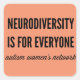 Neurodiversity es para cada uno - todo el texto de los casquillos con "la red de las mujeres del autismo" impresa debajo.