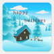 Pegatina Cuadrada Nevado Winter Woods y Cabin "Happy Holidays"