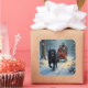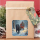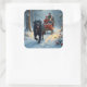 Pegatina Cuadrada Newfoundland Dog Snowy Sleigh Ride Christmas