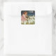 Pegatina Cuadrada Niña alimentando conejos