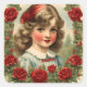 Este diseño de pegatina cuadrada presenta a una encantadora niña en un marco de rosas rojas . Ideal para el día de San Valentín , para su fiesta de jubilación y para el baby shower.