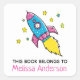 Pegatina Cuadrada Niña Divertida Cohete 'Este Libro Pertenece' y Nom