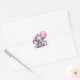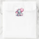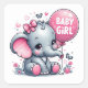 Pegatina Cuadrada Niña dulce elefante con flores y corazón