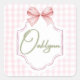 Pegatina Cuadrada Niña Oaklynn Nursery Bow&Gingham personalizada