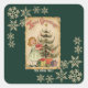 Pegatina Cuadrada Niñas de pinos de época presentan copos de nieve