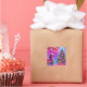 Niñita de caucho parada frente a un hermoso árbol decorado con arte rosa y morado por Bailarines Cowgirl Designs for the Rodeo Days Store.