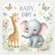 Pegatina Cuadrada Niño pequeño elefante y jirafa con flores