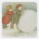 Pegatina Cuadrada Niños rodando bolas de nieve