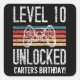 Pegatina Cuadrada Nivel 10 Desbloqueado 10 cumpleaños personalizado
