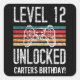 Pegatina Cuadrada Nivel 12 Desbloqueado 12º cumpleaños personalizado