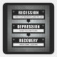 Disfruta de este diseño gráfico con recesión, depresión y texto de recuperación con comentarios adjuntos.