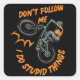 Pegatina Cuadrada no me sigas una bicicleta de montaña divertida