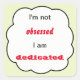 Un pegatina gracioso para que usted declare "No estoy obsesionado, estoy dedicado". O puedes cambiar el texto de "obsesionado" y "dedicado" a tus propias ideas. Texto negro y rojo.