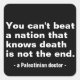 Este "No puedes golpear a una nación que sabe que la muerte no es el fin". Diseño básico de texto blanco Para todos los que apoyan la libertad y la justicia y luchan contra la injusticia. A todos los partidarios de la justa causa palestina. Aumentar y apoyar la liberación de Palestina y Gaza y el establecimiento de la paz en Jerusalén. Diseñado por diseñadores de Peace Lover. Detengan el conflicto palestino-israelí.(PUEDEN CAMBIAR Y PERSONALIZAR ESTE DISEÑO DE TEXTO O CUALQUIER TEXTO QUE DESEEN EN MI TIENDA).
