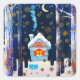 Pegatina Cuadrada Noche de invierno con copas de nieve de oro ruso
