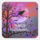 Imagen de Halloween de la silueta de un cuervo sentado en un espeluznante árbol con la luna llena levantándose, ¡en la noche de Halloween! El texto del personalizable dice "¡Feliz Halloween!".