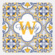 💙 💛 Hermoso Azulejos amarillo, blanco y azul, 9º patrón inspirado en las famosas baldosas portuguesas, Azulejos. Perfecto como decoración en casa o como regalo para una persona de moda. Pegatina cuadrado con impresionantes Azulejos. Nombre personalizado e inicial.
