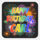 Pegatina Cuadrada Nombre "CARL", diversión "FELIZ CUMPLEAÑOS"