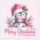 Pegatina Cuadrada Nombre de familia Cute Pingüino Rosa Feliz Navidad