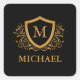 Pegatina Cuadrada Nombre de monograma de estilo personalizado en neg