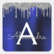 Pegatina Cuadrada Nombre de monograma de lentejuelas azules de Navy