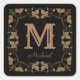 Pegatina Cuadrada Nombre de monograma personalizado clásico de flora