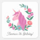 Pegatina Cuadrada Nombre de unicornio de floral de bonito