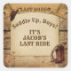 Pegatina Cuadrada Nombre del Novio Último Rodeo Vaqueros Ensillan Mu