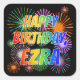Pegatina Cuadrada Nombre "EZRA", Diversión "FELIZ CUMPLEAÑOS"