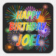Pegatina Cuadrada Nombre "JOEL", Diversión "FELIZ CUMPLEAÑOS"