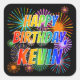 Pegatina Cuadrada Nombre "KEVIN", diversión "FELIZ CUMPLEAÑOS"
