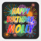 Pegatina Cuadrada Nombre "MOLLY", diversión "FELIZ CUMPLEAÑOS"