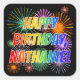 Pegatina Cuadrada Nombre "NATHANIEL", Diversión "FELIZ CUMPLEAÑOS"