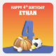 Un regalo diseñado para Ethan o cualquier otro niño que esté celebrando su cuarto cumpleaños. Puede reemplazar el nombre y personalizarlo con el nombre del niño. Saluda a cualquier chico con un feliz cuarto cumpleaños con este colorido artículo de regalo de bolas deportivas.