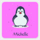 Pegatina Cuadrada Nombre personalizado pingüino lindo en rosa