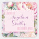 Pegatina Cuadrada Nombre Personalizado Rosa Fucsia Peonía Fiesta de