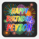 Pegatina Cuadrada Nombre "PEYTON", diversión "FELIZ CUMPLEAÑOS"